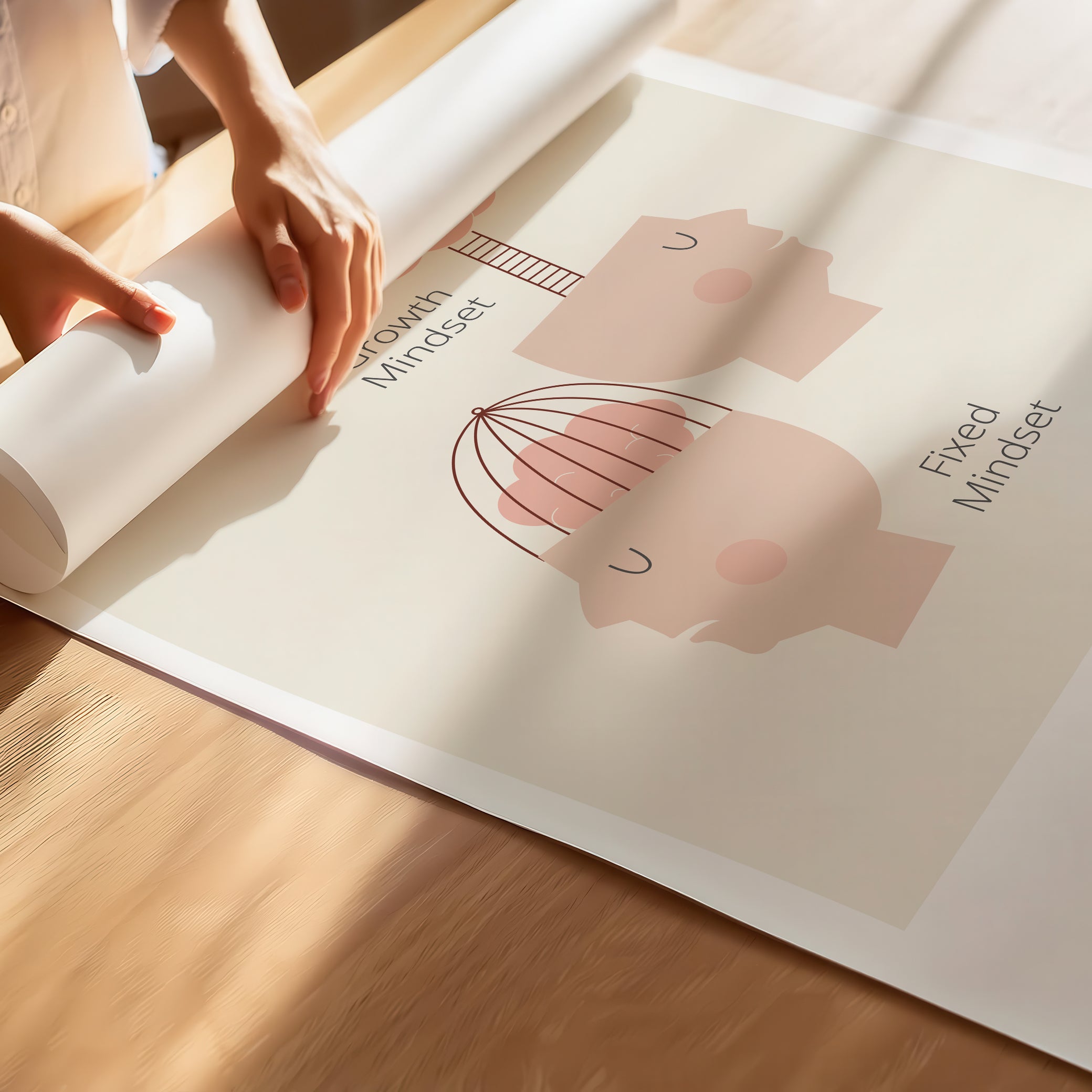 Growth vs Fixed Mindset – Posters with Quotes for Kids Inspiration for Growth Mindset , Poster – Beige