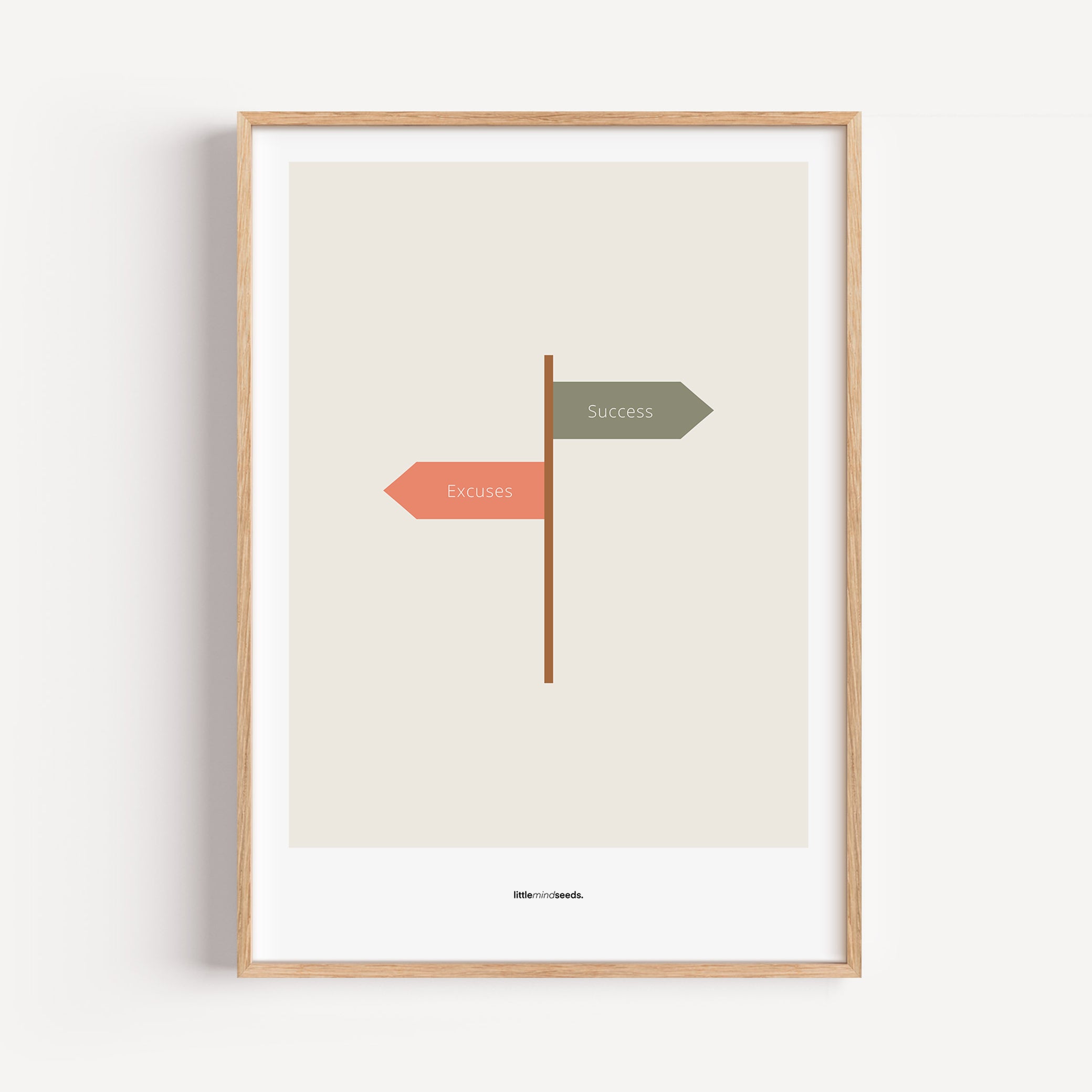 "Only Two Ways – Either You Have Excuses, or You Achieve Success" – Discipline, Habits & Achievements Children Motivational Wall Art to Foster Focus & Success | Matte Frame– Beige