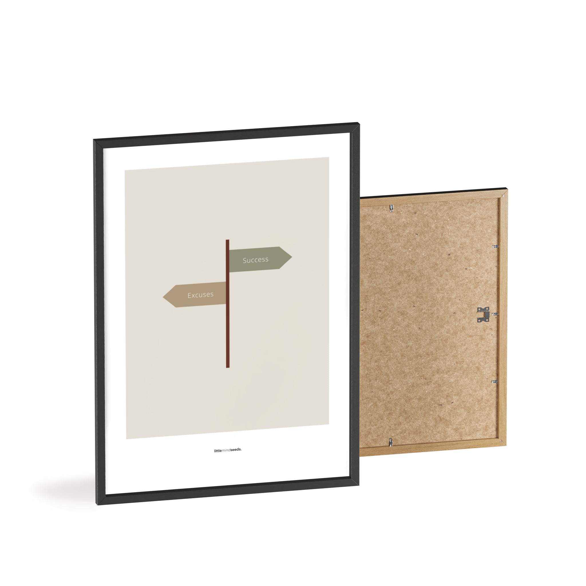 Our “Only Two Ways” minimalist motivational Framed Poster delivers a clear and uncompromising truth: success and excuses can’t exist together. It’s a daily reminder to take ownership, push past obstacles, and focus on what moves you forward.