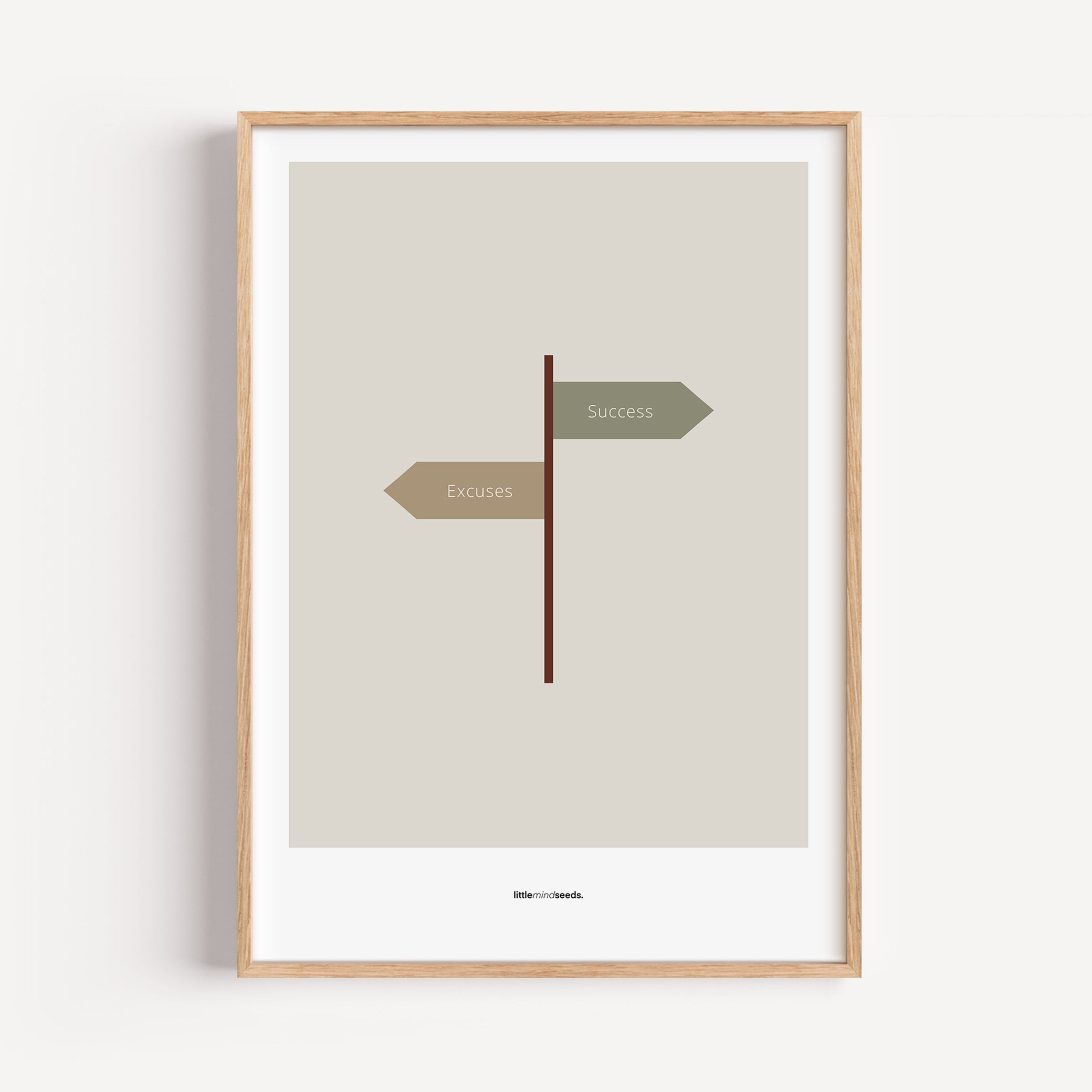 "Only Two Ways – Either You Have Excuses, or You Achieve Success" – Discipline, Habits & Achievements Children Motivational Wall Art to Foster Focus & Success | Matte Frame– Dark Gray