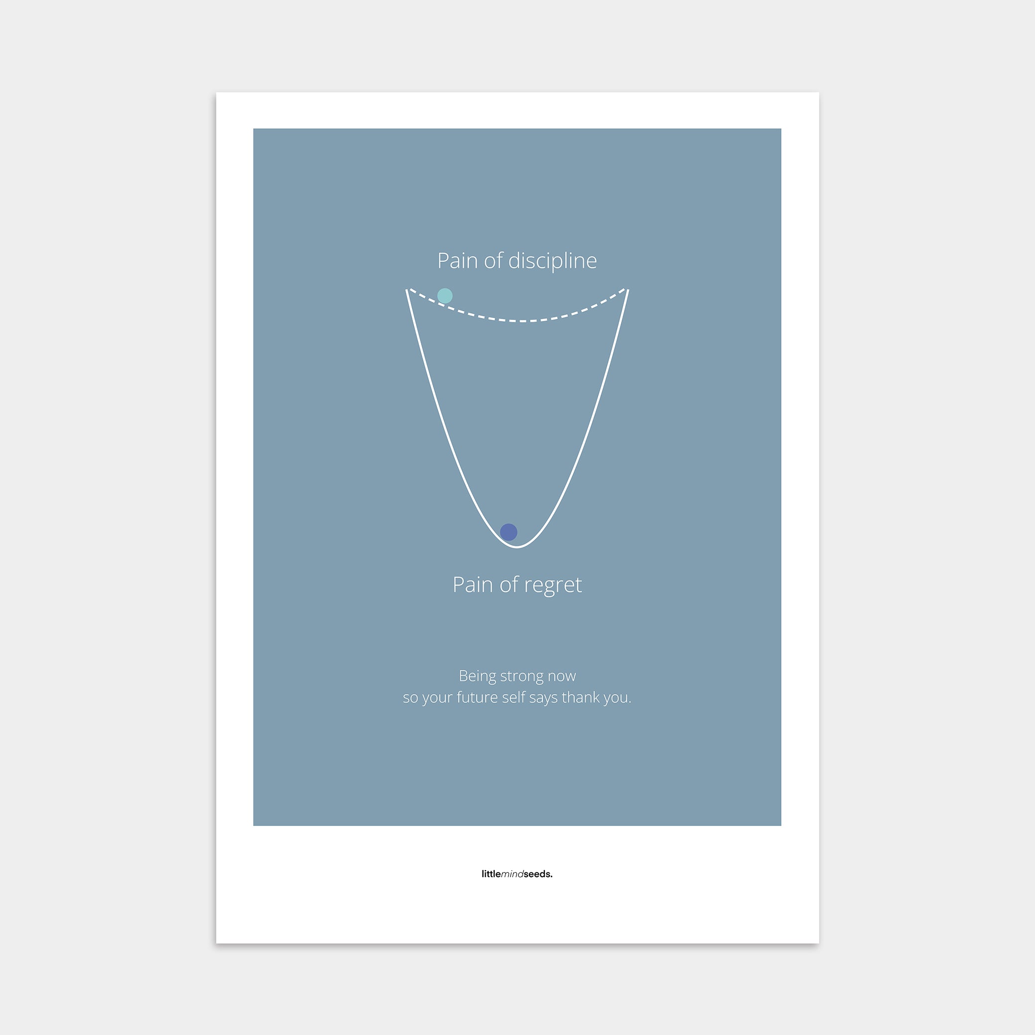 Our “Pain of Discipline vs Pain of Regret” minimalist motivational poster reminds us that while discipline may feel uncomfortable in the moment, it prevents the lasting disappointment of missed opportunities. It’s a clear message to act today for a better tomorrow.
