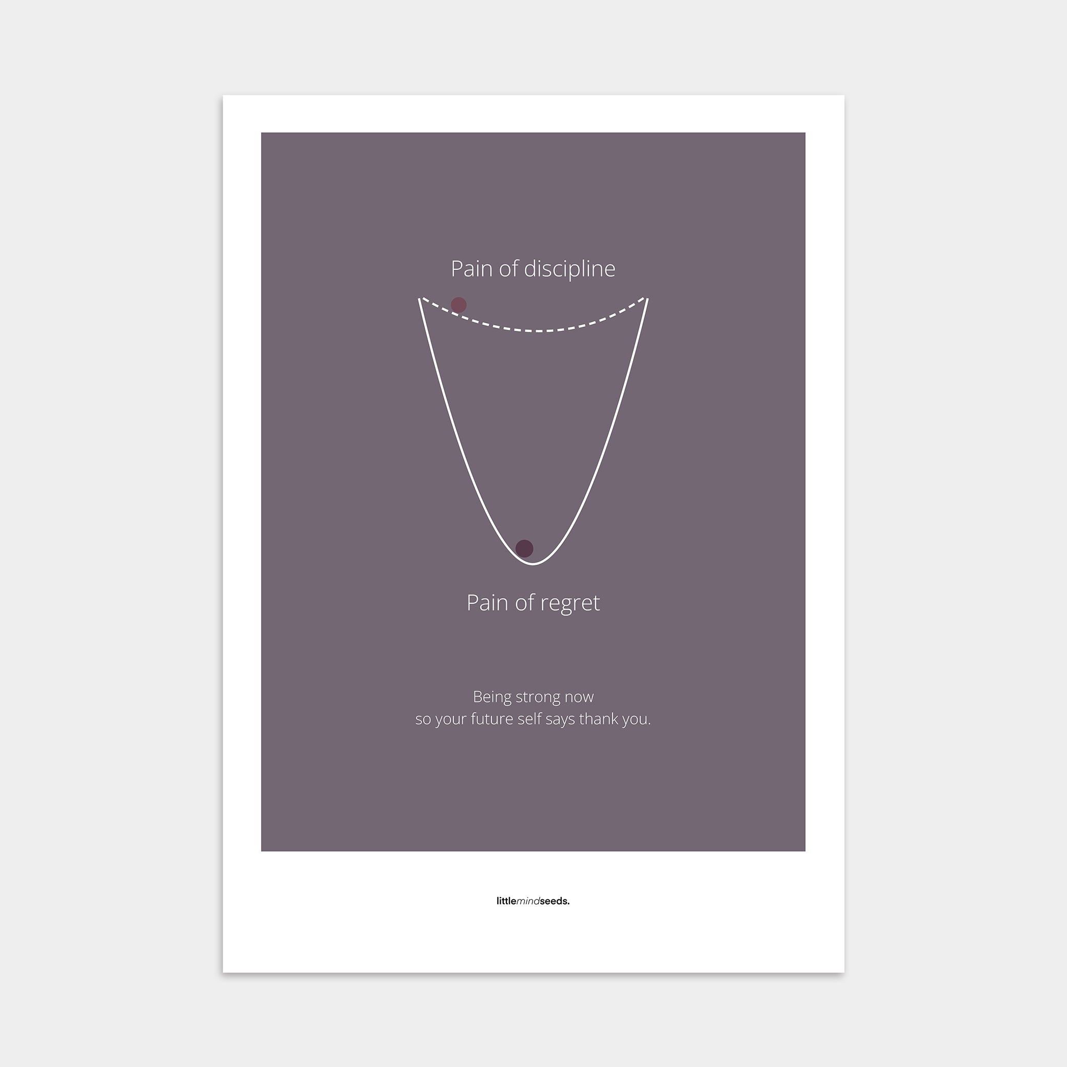 Our “Pain of Discipline vs Pain of Regret” minimalist motivational poster reminds us that while discipline may feel uncomfortable in the moment, it prevents the lasting disappointment of missed opportunities. It’s a clear message to act today for a better tomorrow.