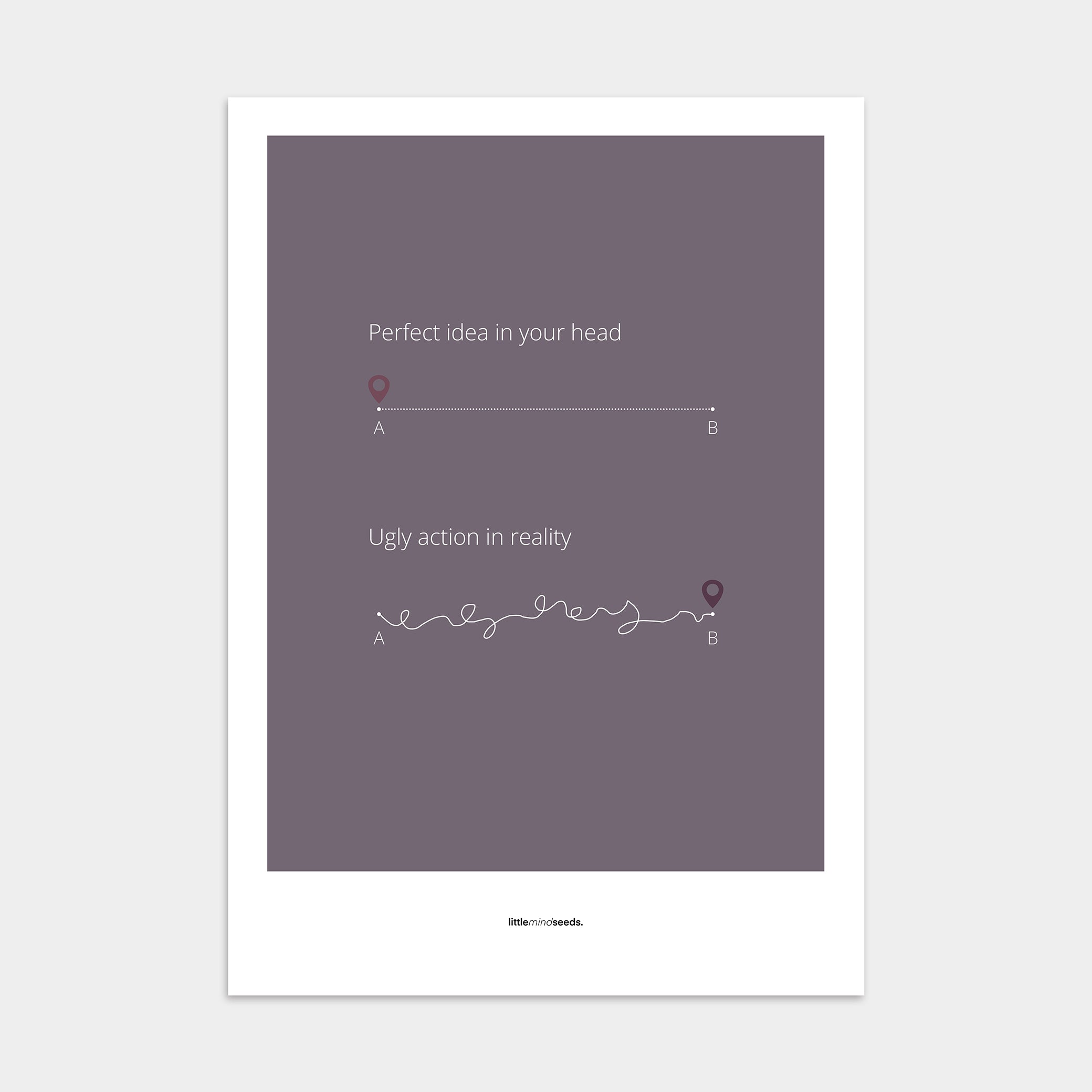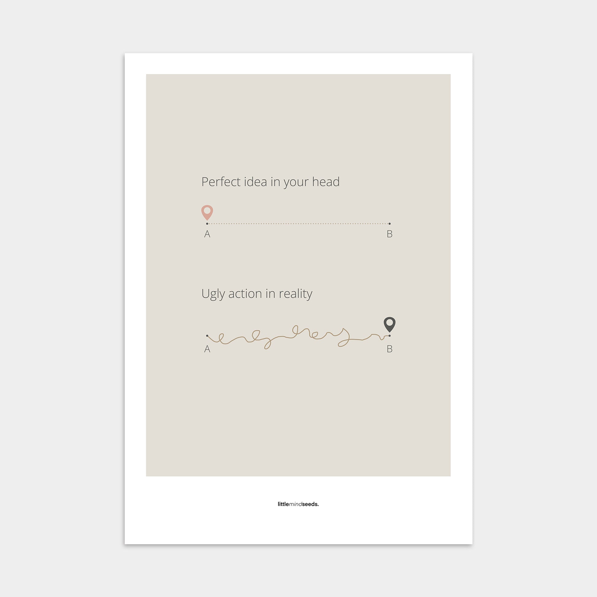 “Perfect Idea In Your Head vs Ugly Action In Reality" – Critical Thinking & Problem-Solving | Minimalist Quotes on the Wall, Downloadable PDF Bundle - ALL colors