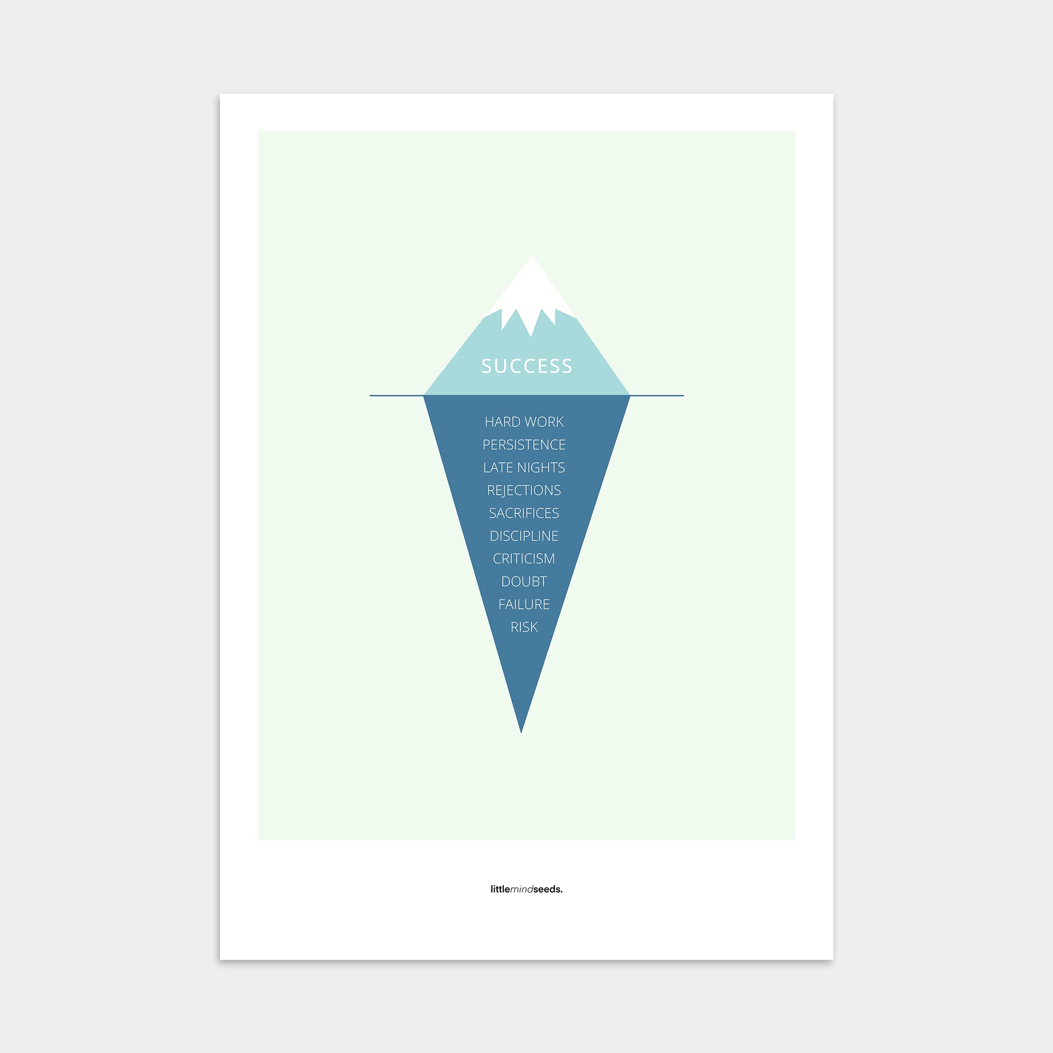 Our “The Iceberg Illusion” motivational poster teaches kids that behind visible achievements lie discipline, persistence, and unseen hard work.