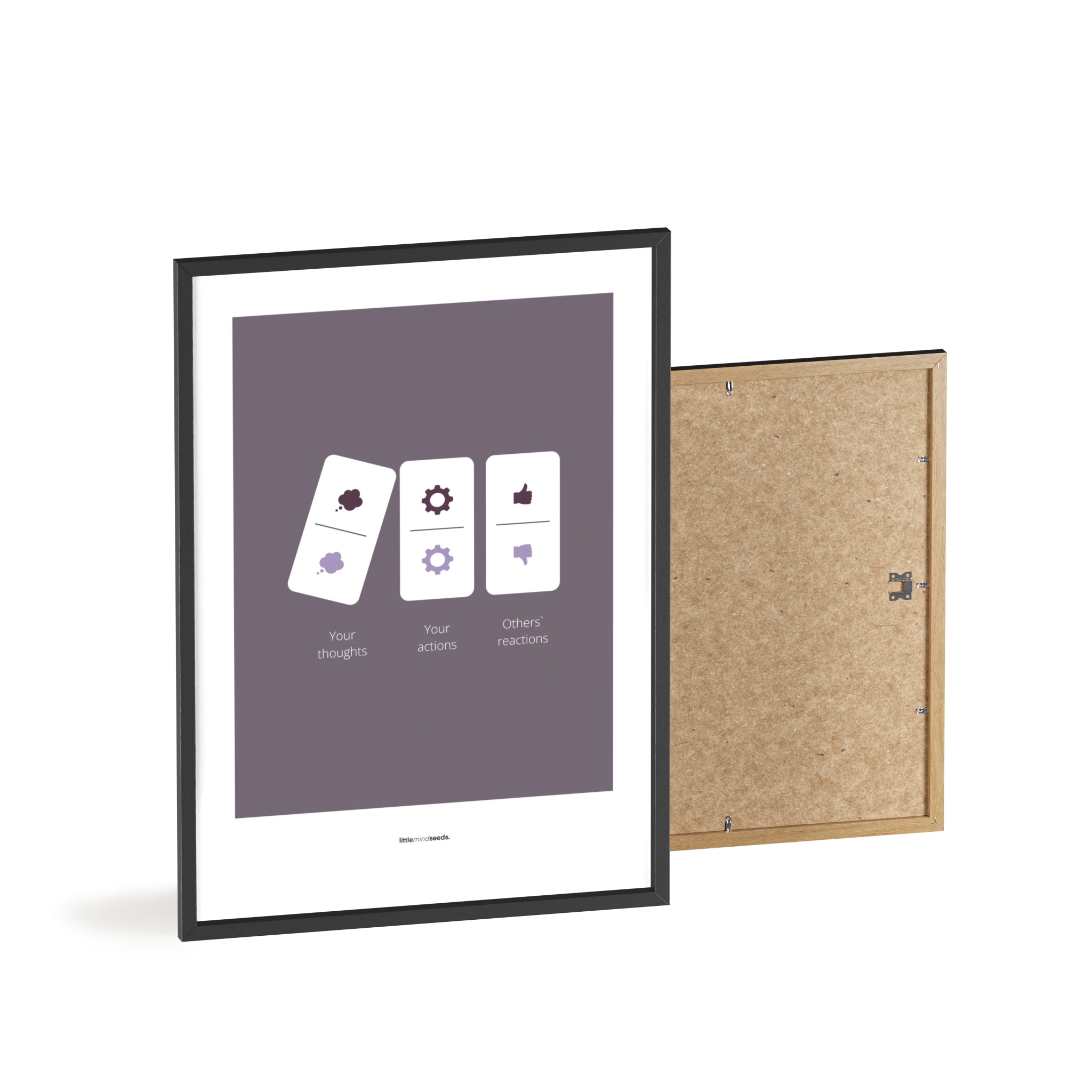 Our “Your Thoughts Turn Into Actions” minimalist motivational Framed Poster shows the chain reaction from thoughts to actions to others’ reactions. It’s a powerful visual reminder that our mindset shapes how we behave—and how the world reacts in return.