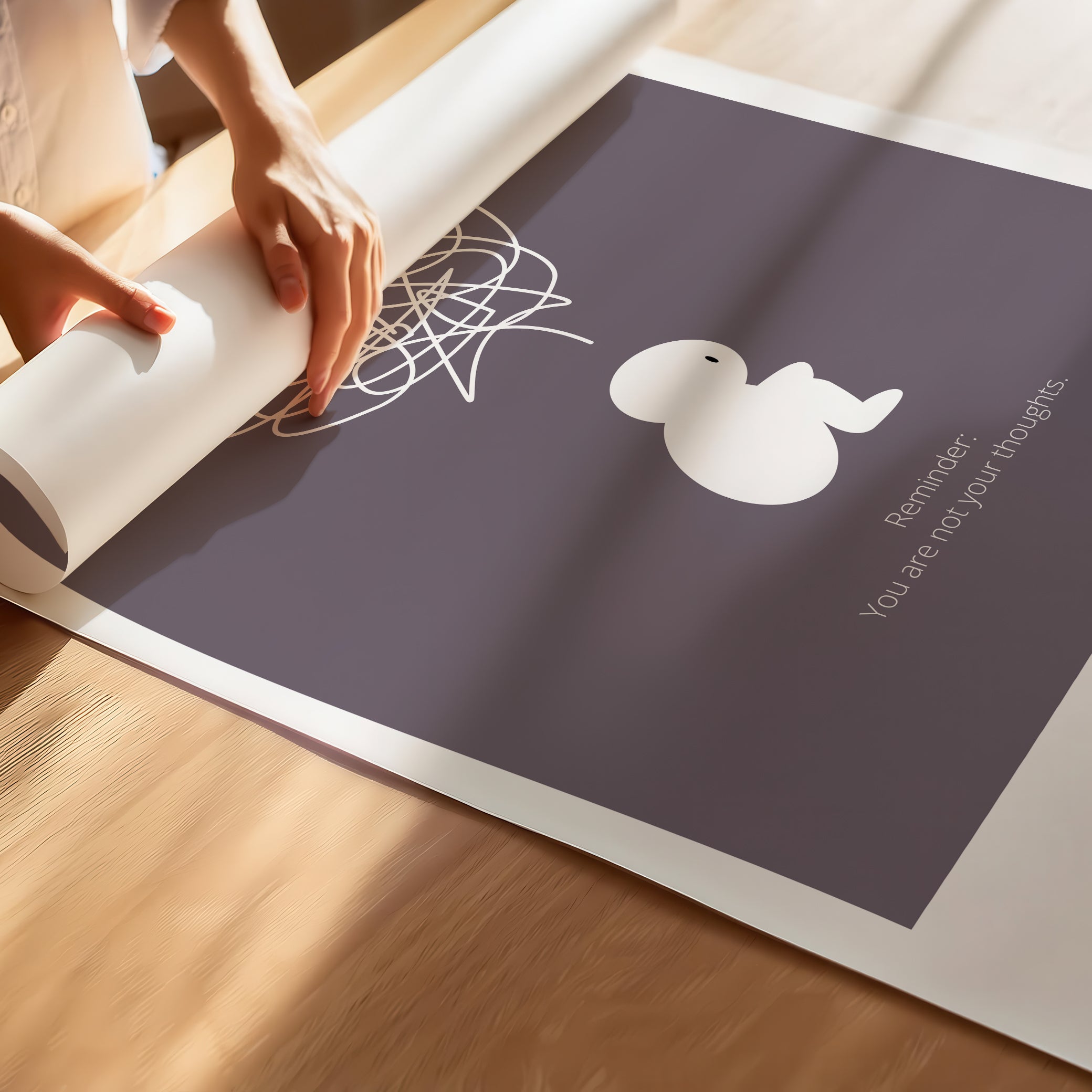 Our “We Are Not Our Thoughts – We Are Our Actions” poster is a gentle motivational reminder that thoughts, even the messy or negative ones, do not define who we are. What truly matters are the choices we make and the actions we take.